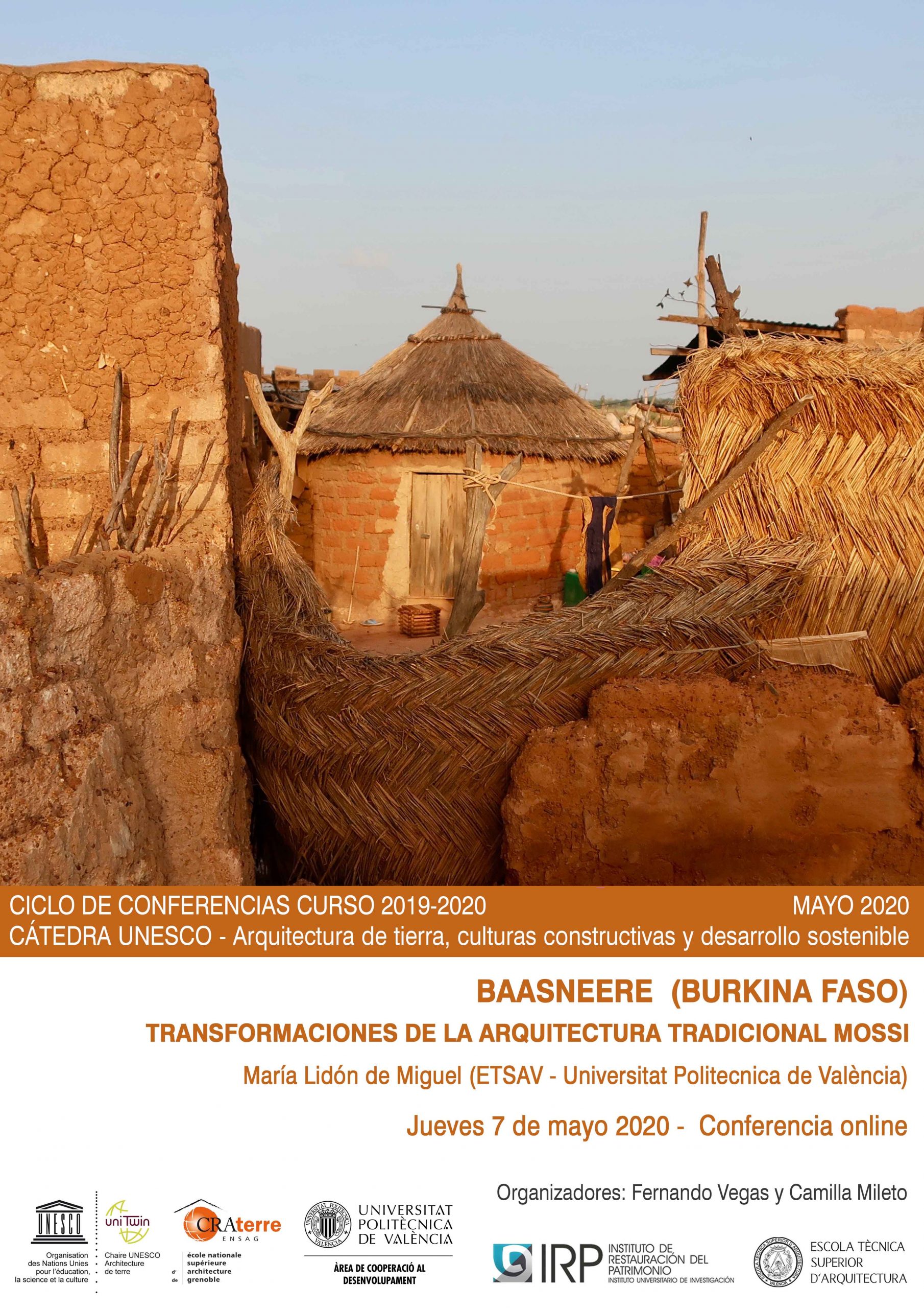 El título de nuestra próxima conferencia es “Baasnere (Burkina Faso): Transformaciones de la arquitectura tradicional Mossi” y correrá a cargo de María Lidón de Miguel. Ya está disponible en nuestro canal de Youtube, puedes verla aquí.