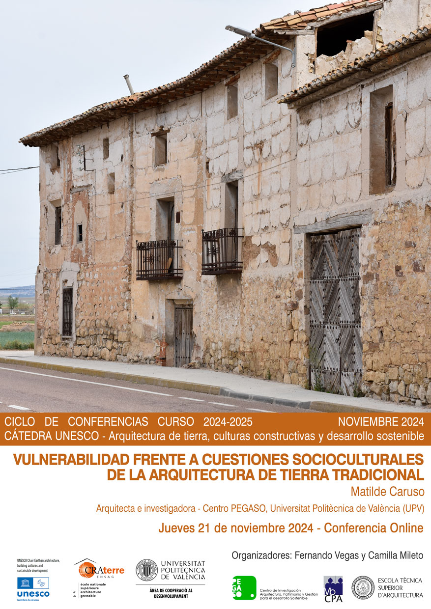 Desde la Cátedra UNESCO de Arquitectura de Tierra, Culturas Constructivas y Desarrollo Sostenible os enviamos la información relativa a la conferencia de este mes, ya disponible en nuestro canal de Youtube: https://youtu.be/GD_-NmSsmVc