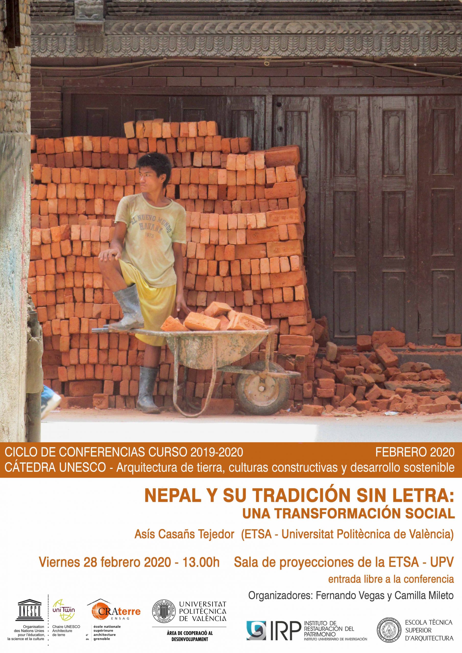 The conference’s title is “Nepal y su tradición sin letra: una transformación social” by Asís Casañs Tejedor. It will take place on Friday February 28th 2020, at 13:00h, in the Sala de Proyecciones of the Escuela Técnica Superior de Arquitectura – Universitat Politècnica de València.