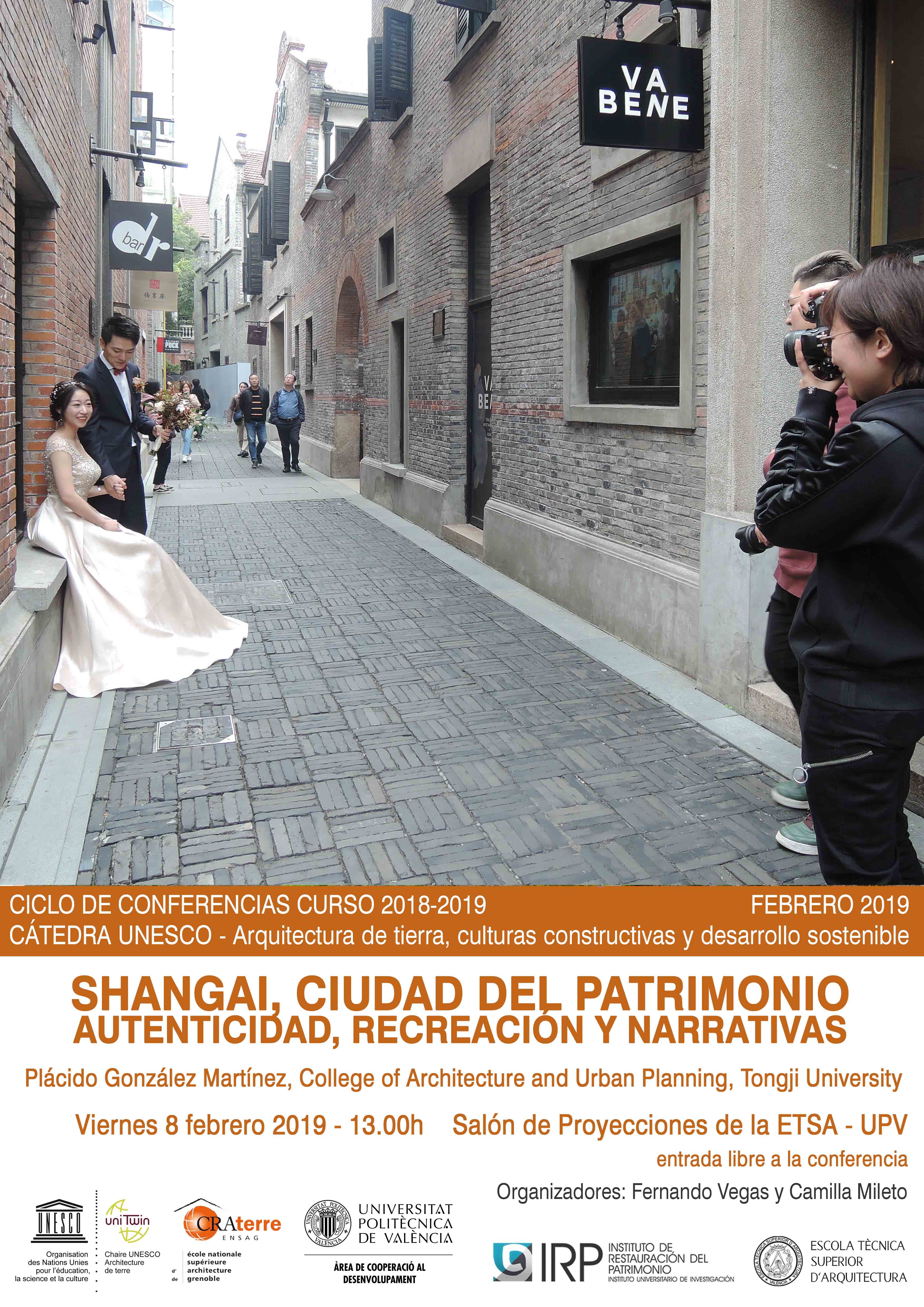 The conference’s title is “Shangai, ciudad del patrimonio: autenticidad, recreación y narrativas” by Plácido González Martínez, from College of Architecture and Urban Planning, Tongji University. It will take place next Friday february 8th 2019, 13:00h, at Sala de Proyecciones in the Escuela Técnica Superior de Arquitectura de la Universitat Politècnica de València.